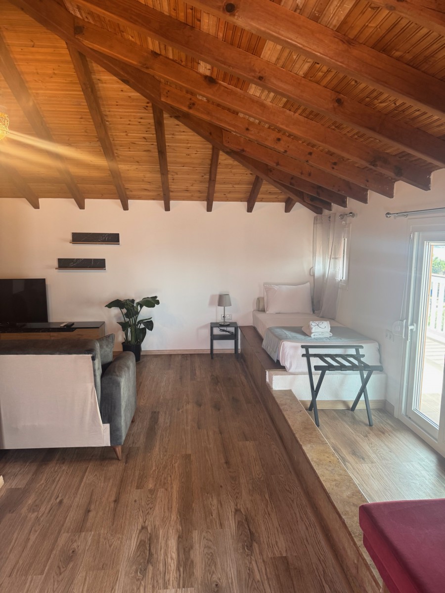 În plus, de la balcon puteți să vă bucurați de priveliștea către apele albastre ale Golfului Toroneos. Reprezintă alegerea potrivită pentru cupluri și familii care doresc să se relaxeze și să aibă o ședere plăcută, trăind experiențe de neuitat oferite de regiunea noastră.